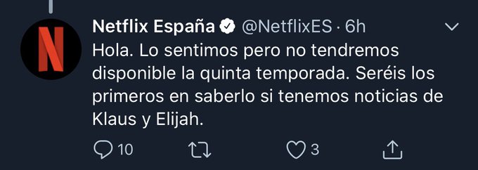 En octubre, cuando la plataforma de streaming no subió la quinta temporada de la serie después de anunciarla oficialmente en el interior de la plataforma, y ante el aluvión de peticiones sobre la serie, Netflix España respondió a uno de sus usuarios en redes (algo que no siempre hace cuando una serie queda colgada), con el siguiente mensaje