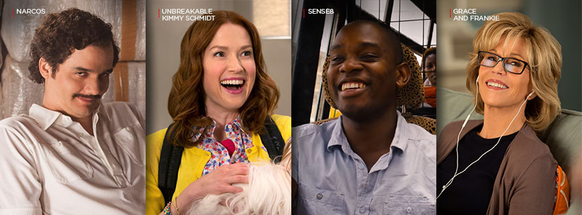 Series originales como "Marvel - Daredevil", "Sense8", "Grace and Frankie", "Unbreakable Kimmy Schmidt", "Marco Polo", "Club de Cuervos" y "Narcos". Más adelante, el 20 de noviembre, llegará "Jessica Jones" y la miniserie "The defenders".